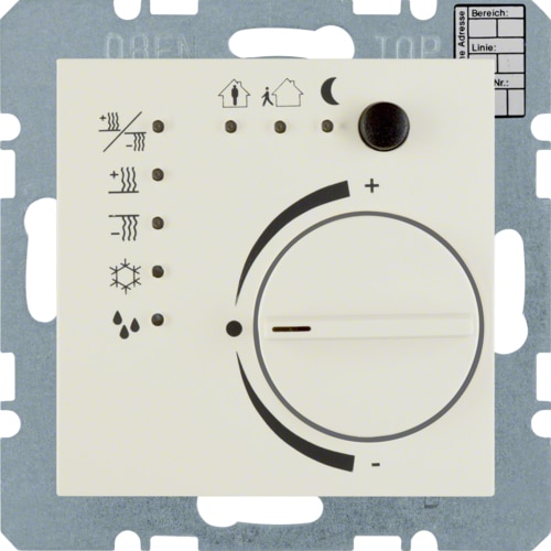 Object room thermostat with button interface pola
